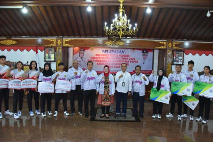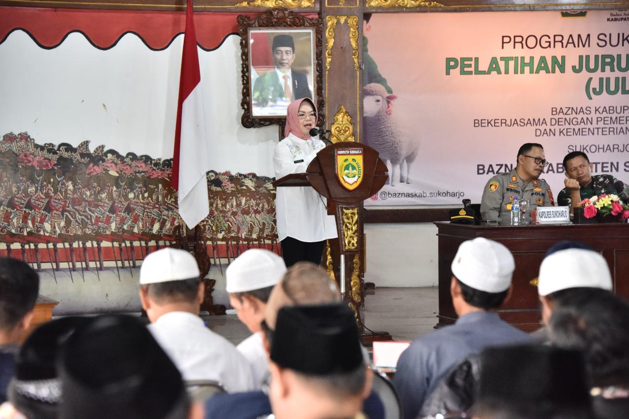 SUKOHARJO – Bupati Sukoharjo, Etik Suryani, menghadiri Pengajian Akbar Milad Ke-3 Pondok Pesantren (Ponpes) Darul Qur’an Abdul Aziz Blotan Desa Gentan, Kecamatan Bak. Pengajian tersebut digelar pada Sabtu (22/6/2024) malam.