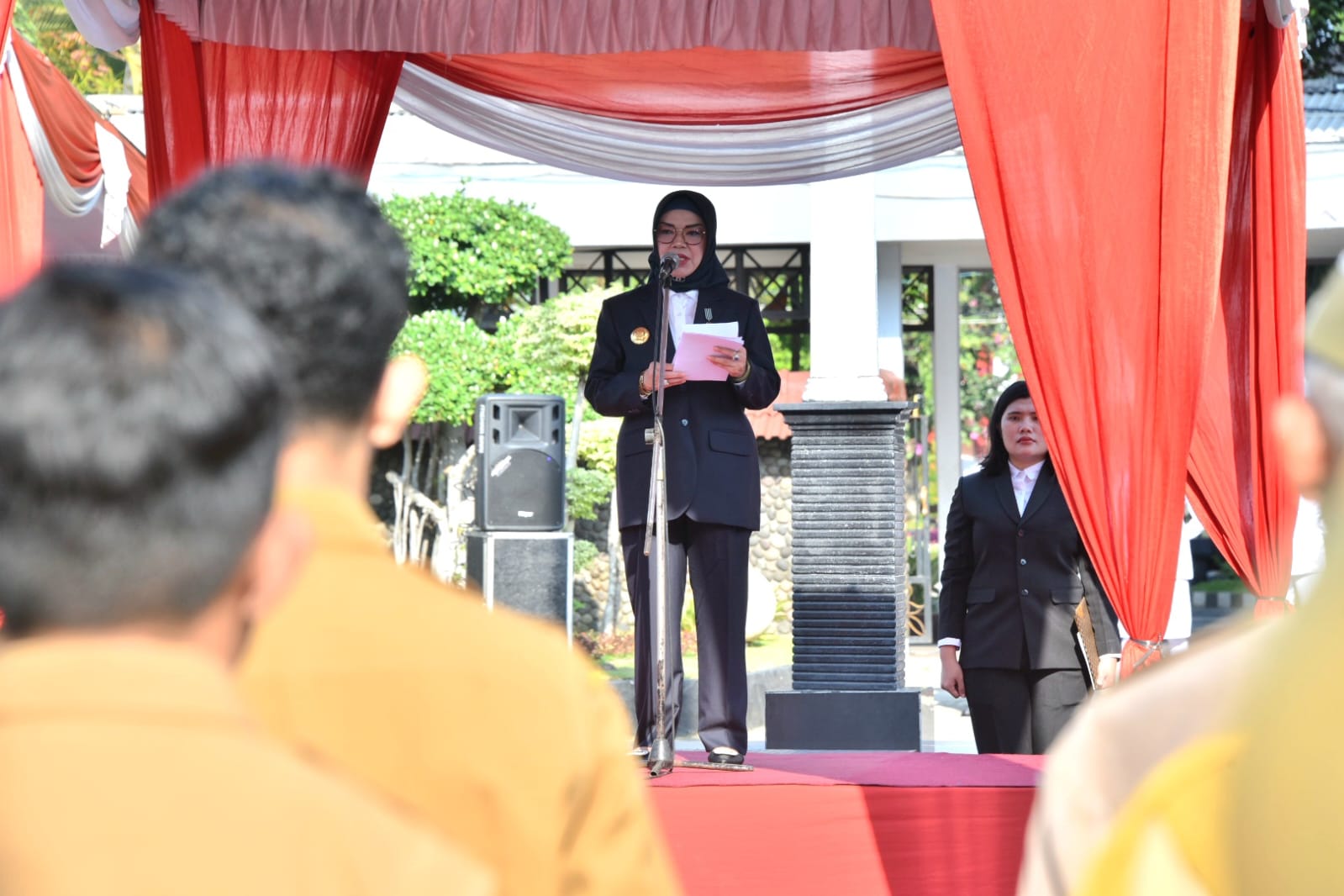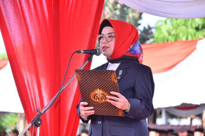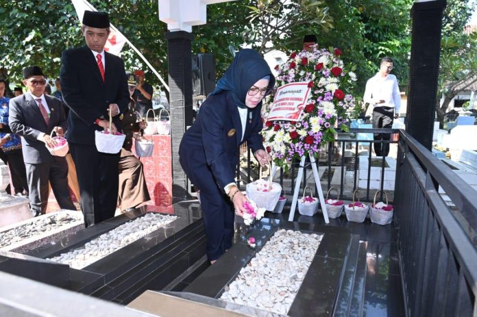 SUKOHARJO – Bupati Sukoharjo, Etik Suryani menjadi inspektur upacara Peringatan Hari Kebangkitan Nasional 2024 di halaman Setda Pemkab Sukoharjo, Senin (20/5/2024). Usai upacara, Bupati dan pejabat Forkopimda melakukan tabur bunga di Taman Makam Pahlawan (TMP) KH. Samanhudi di Desa Banaran, Kecamatan Grogol.