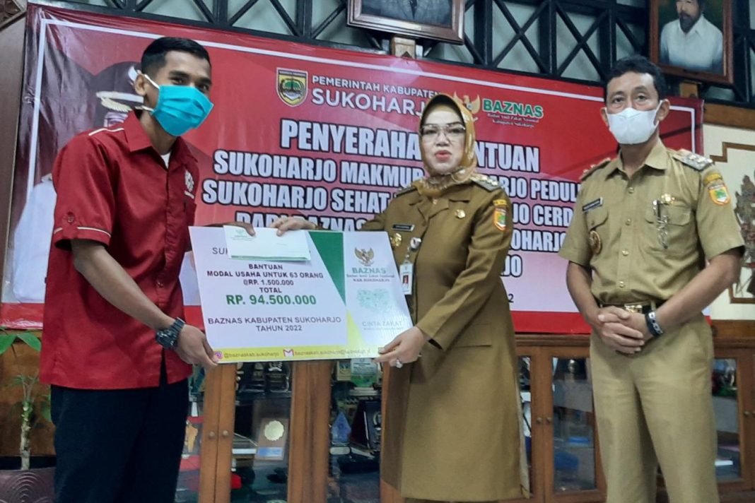 Sedangkan Kepala Dinas Perindustrian dan Tenaga Kerja (Disperinaker) Sukoharjo, Agustinus Setiyono, menyampaikan masing-masing peserta pelatihan BLK mendapat bantuan uang tunai sebagai stimulan modal usaha sebesar Rp1,5 juta. Total keseluruhan untuk 63 orang penerima bantuan sebesar Rp94,5 juta dimana bantuan tersebut dari Baznas.