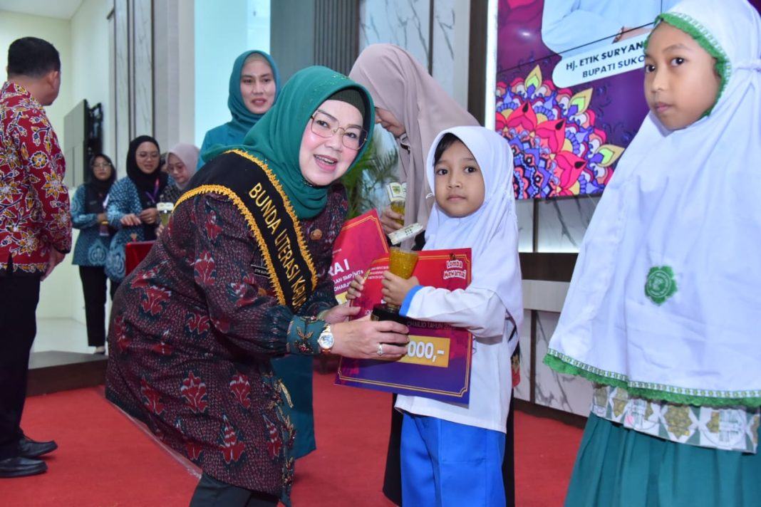SUKOHARJO – Bupati Sukoharjo, Etik Suryani, menghadiri Dispusip Performing Art dan Pengukuhan Bunda Literasi Tingkat Kecamatan dan Desa/Kelurahan. Acara tersebut dilaksanakan di Auditorium Menara Wijaya Lantai 10, Kamis (16/10/2025).