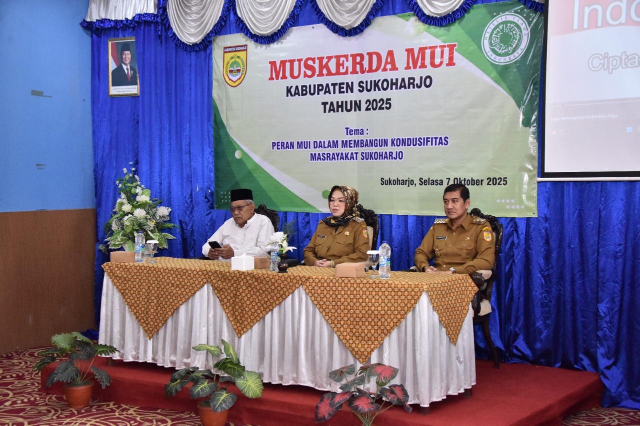 Bupati berharap agar MUI dapat menjadi jembatan antar ulama dan umaro, untuk bersama-sama mendukung dan menyukseskan pembangunan daerah. Sekaligus meningkatkan kegiatan yang mempererat ukhuwah Islamiyah, mewujudkan kerukunan antar umat beragama dan merekatkan persatuan serta kesatuan bangsa, serta dapat berperan dalam menangkal paham-paham radikalisme dan paham-paham yang menyesatkan lainnya di Kabupaten Sukoharjo, sehingga dapat mewujudkan masyarakat Kabupaten Sukoharjo yang aman, damai dan toleran.
